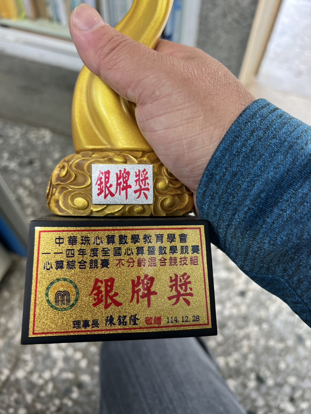 賀 三甲汪芷嘉 參加中華珠心算數學教育學會114年度全國心算暨數學競賽 榮獲心算綜合競賽不分齡混合競技組銀牌獎